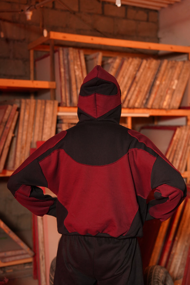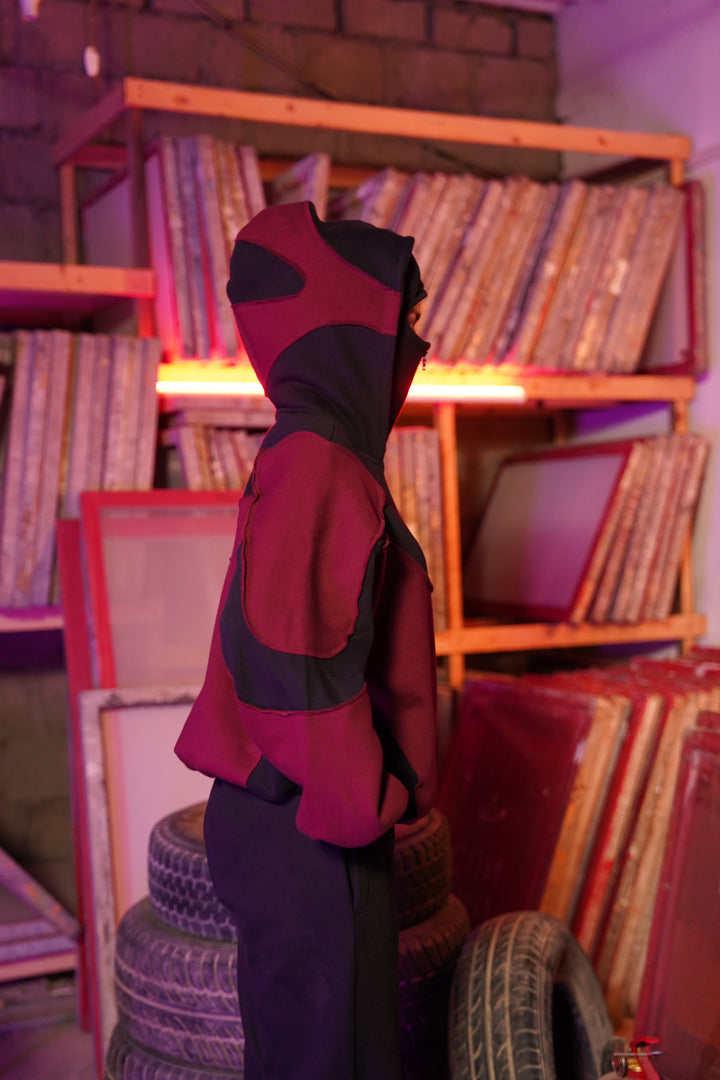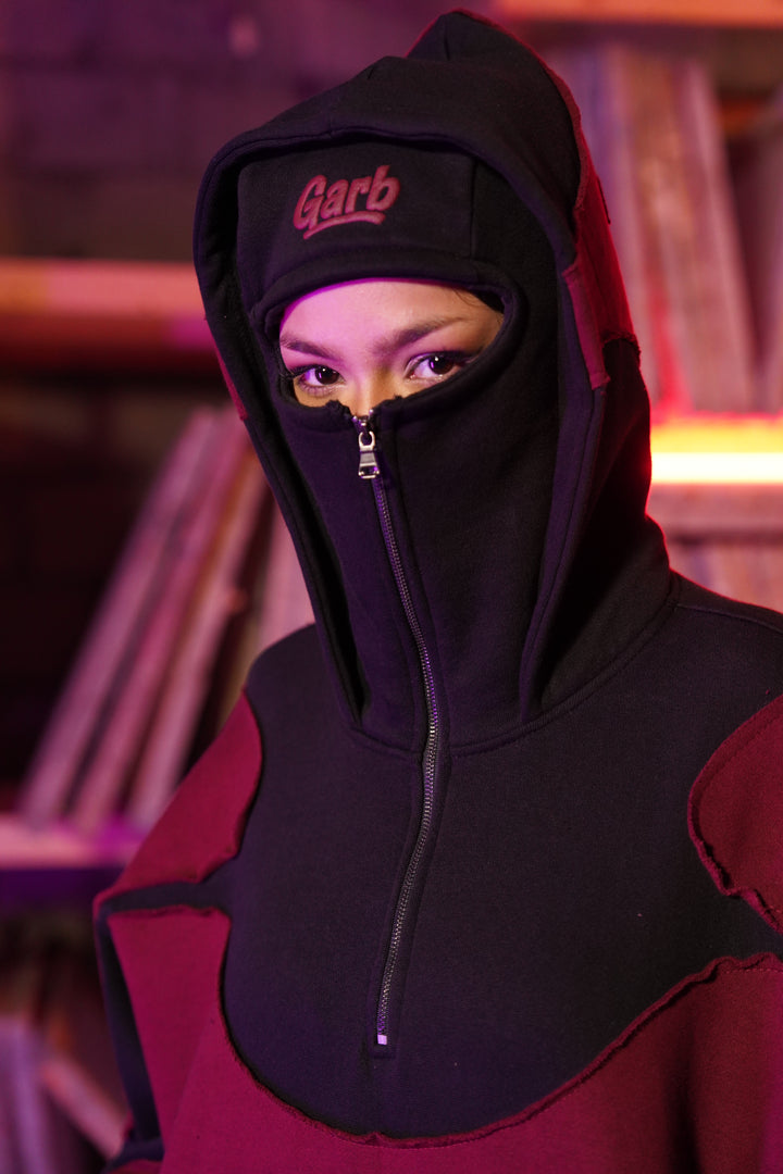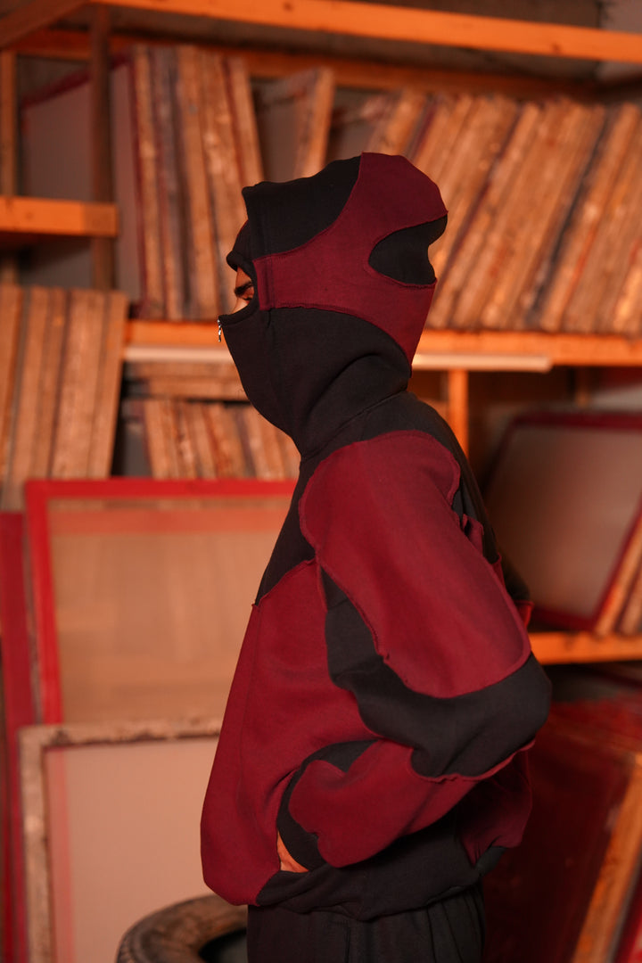 MAROON & BLACK BALACLAVA HOODIE
