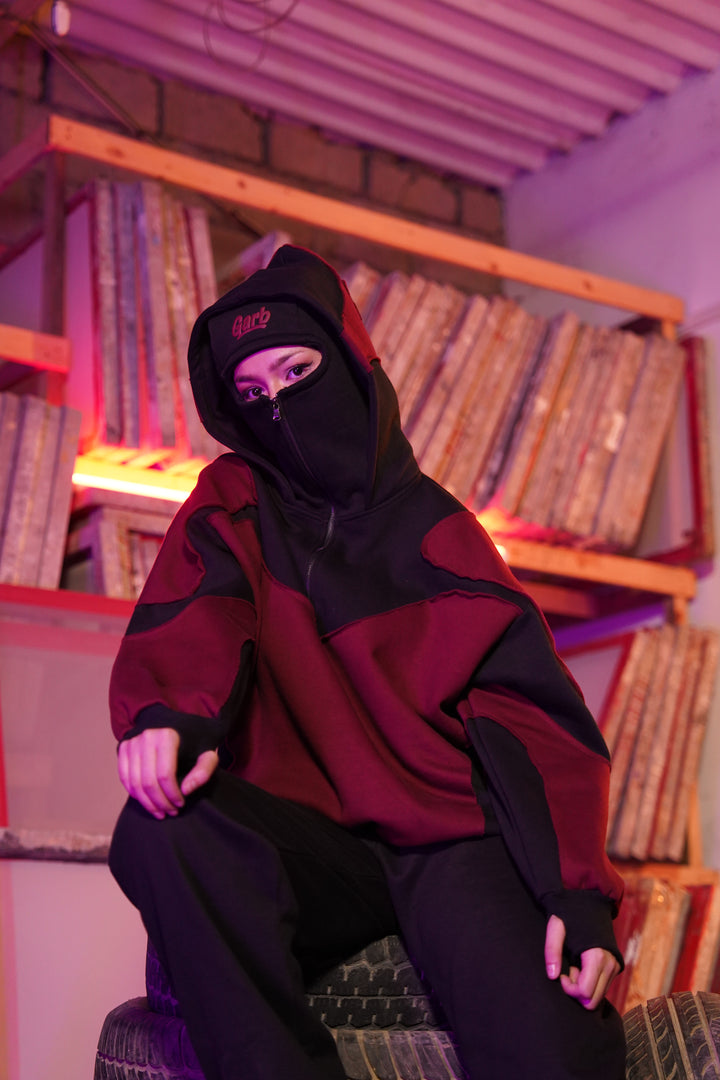 MAROON & BLACK BALACLAVA HOODIE – GARB GALLERIA